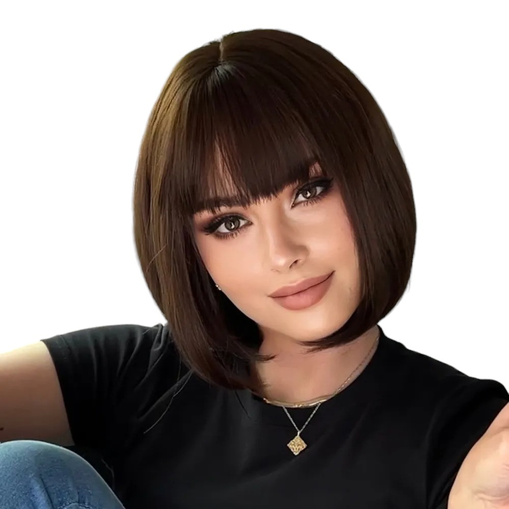 Перука каре шоколад, натуральне синтетичне волосся